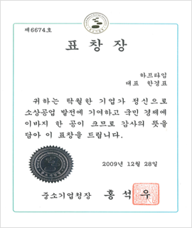 중소기업청장상 수상