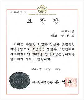 제7회 전국소상공인대회 지식경제부장관상 수상