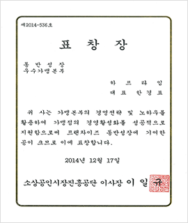동반성장우수가맹본부 표창장 수상