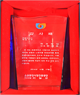 소상공인시장진흥공단 “동반성장우수가맹본부” 표창장 수상